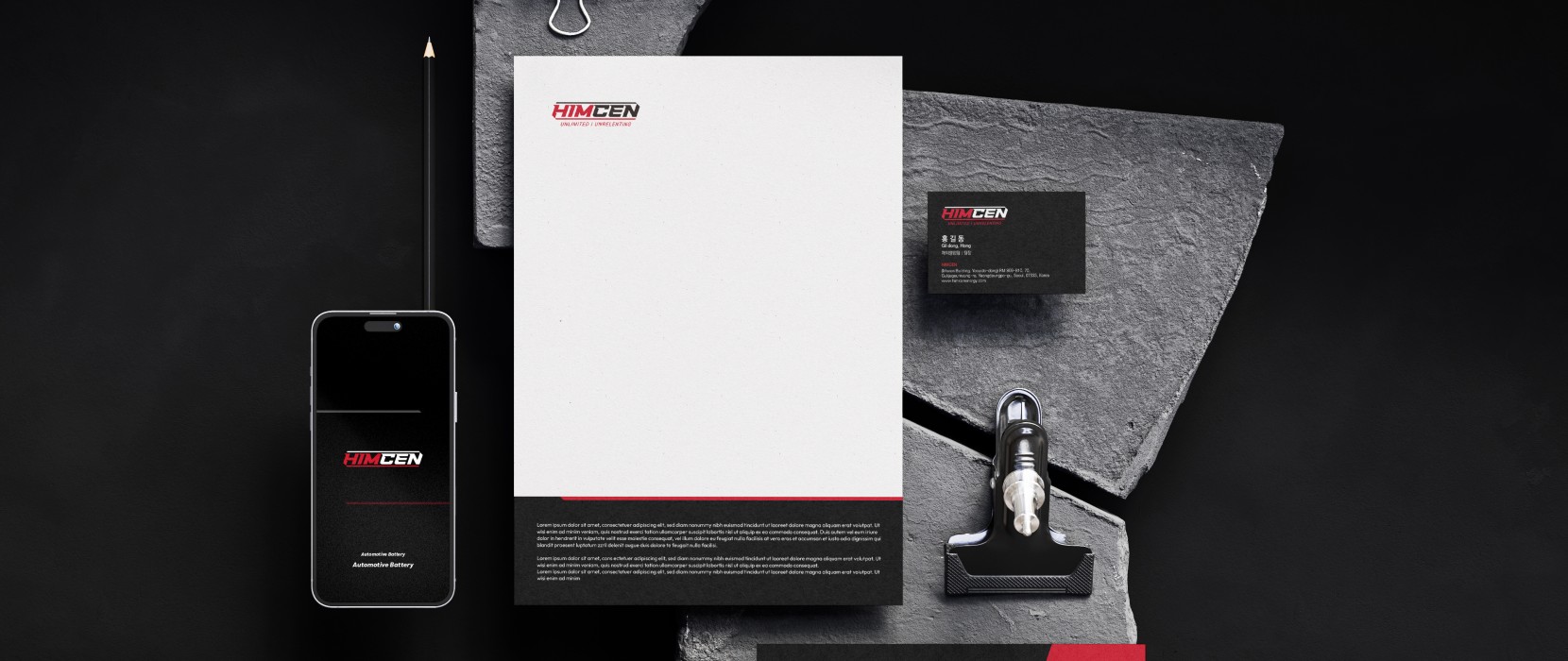 ‘ 끊임없는, 무한한 힘, 힘쎈 ’ 이라는 컨셉을 담아 디자인한 워드마크형 로고입니다. 힘이 계속해서 회전하며 이동하는 역동적인 이미지를 글자와 그래픽으로 재해석한 디자인입니다. HIM 부분과 CEN 부분의 컬러 차이를 두어 보다 쉽게 가독할 수 있습니다.