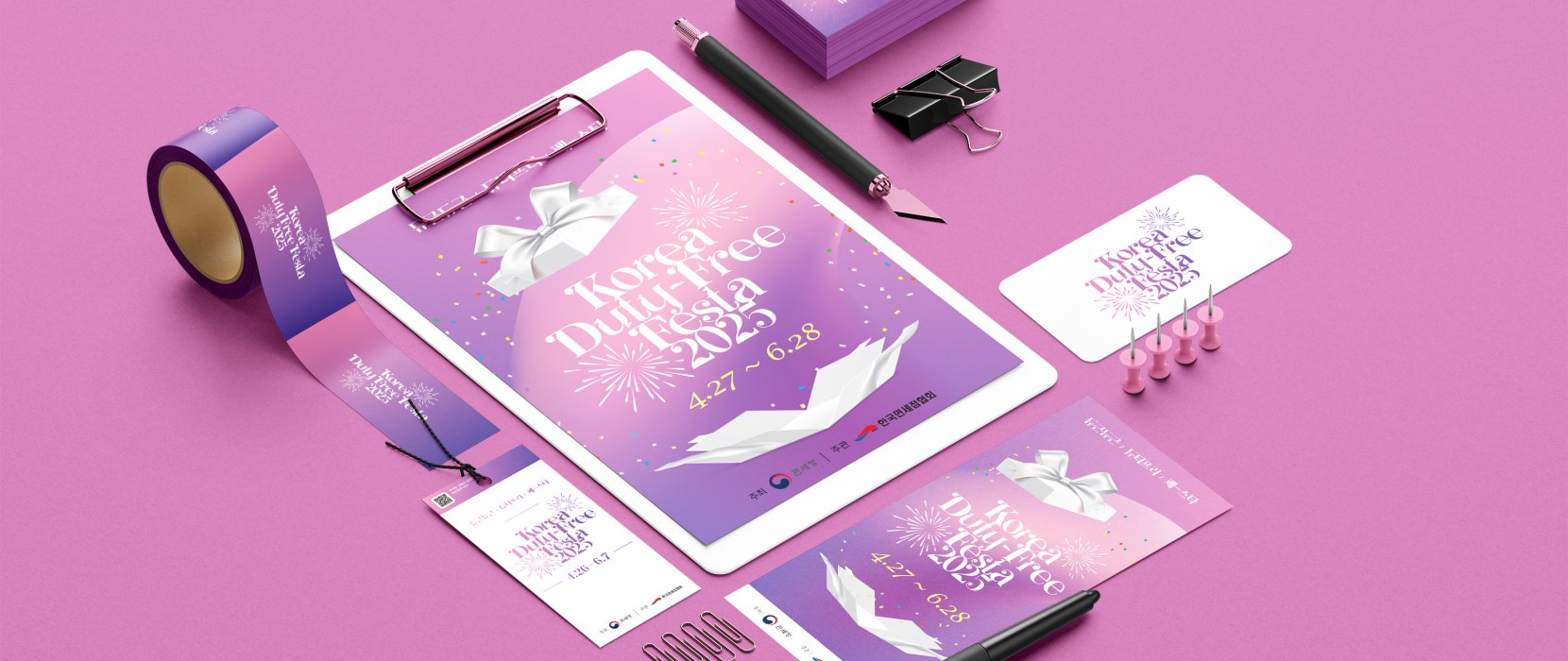 ‘ 쇼핑의 설레임을 느낄 수 있는 곳, 코리아 듀티 프리 페스타 2025 ’ 라는 이미지를 활용해 디자인한 로고입니다. 신비로운 이미지의 퍼플 컬러를 베이스로한 디자인에 축제 분위기의 워드마크 디자인을 활용했습니다. 또한 폭죽의 이미지를 함께 배치하여 설레임과 다양한 혜택을 표현하였습니다.