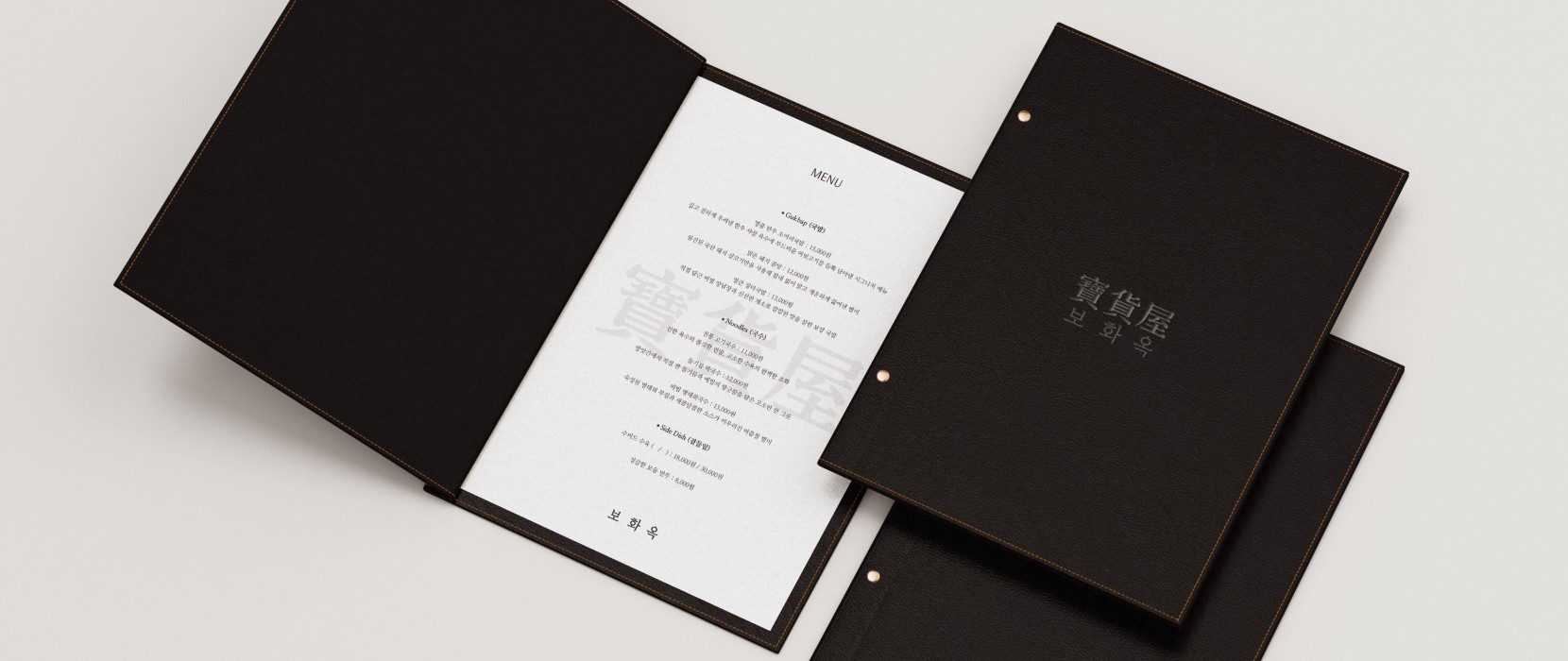 보화옥의 한자를 활용하여 디자인한 워드마크형 로고입니다. 재료와 정성에 신경을 써 손님을 맞이하는 모습과 같이 획 하나하나 힘을 담아 넣는 디자인으로 의미를 담아 표현하였습니다. 블랙 컬러를 메인으로 한방 재료를 기반으로 우려내는 깊고 건강한 한 끼를 제공하는 모습을 담아 전달합니다.